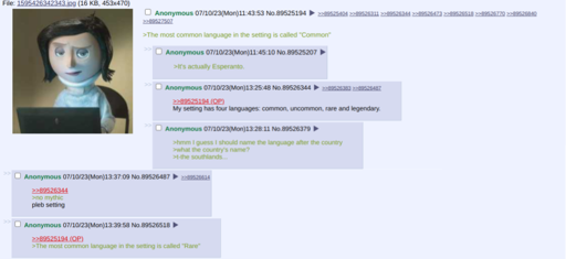 TheMetroidHatcher@ttrpg.network · 3 years agoAnon names his world languagesttrpg.networkimagemessage-square9linkfedilinkarrow-up137arrow-down13