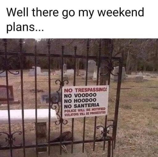 You laughing, but that is great neighbouring management. Someone must have said “we’re not voodooing, we’re hoodooing” and the city added a no hoodooing part