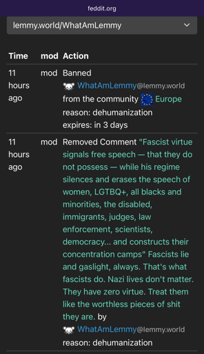 Not really “powertripping”. Just pathetic. Consider this a notice to avoid feddit.org… I’ve unsubbed and blocked the instance.
