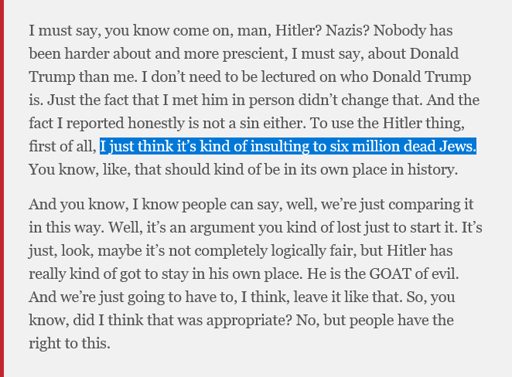 Yesterday, Bill Maher accuses Larry David of disrespecting the victims of the Holocaust by comparing Trump to Hitler.