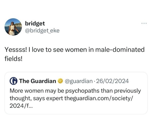 minus-square🇨🇦🇩🇪🇨🇳张殿李🇨🇳🇩🇪🇨🇦@ttrpg.networklinkfedilinkarrow-up6·11 months agoCamile Paglia: The reason there is no female Mozart is the same as the reason there’s no female Jack the Ripper. Women: Hold our beer.