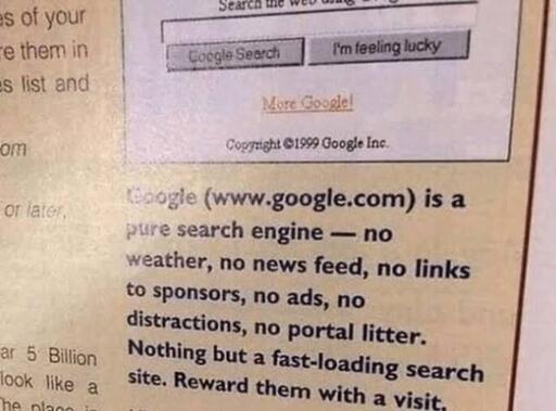 tfm@europe.pubM to Anticonsumption@europe.pubEnglish · 9 months agoRemember when Google used to be one of the good guys?europe.pubimagemessage-square21linkfedilinkarrow-up1277arrow-down16file-text