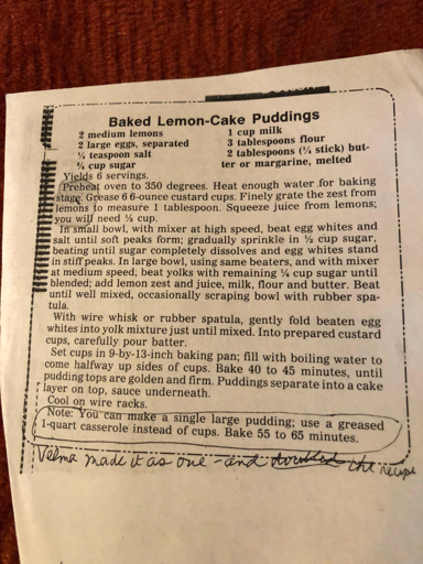 [Handwriting underneath reads:] Velma made it as one - and [Underlined] doubled [End underline] the recipe