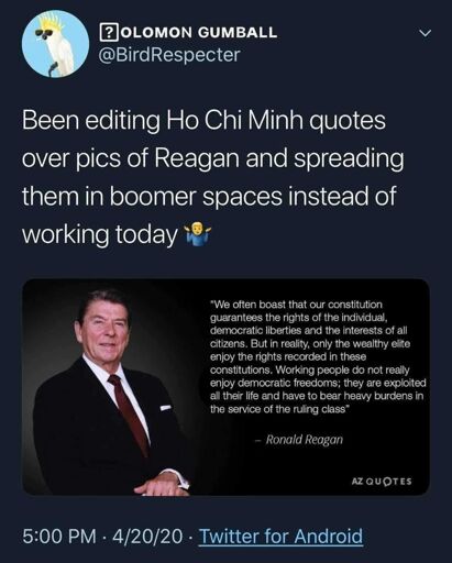 To me, this seems like just a way to get people to like Reagan more. Nobody who reads this and then gets told “actually, this is ho chi minh” is gonna be like “wow, I’ve judged communism too harshly”.