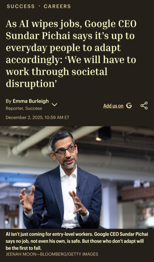 https://fortune.com/2025/12/02/ai-wipes-jobs-google-ceo-sundar-pichai-everyday-people-to-adapt-accordingly-we-have-to-work-through-societal-disruption/