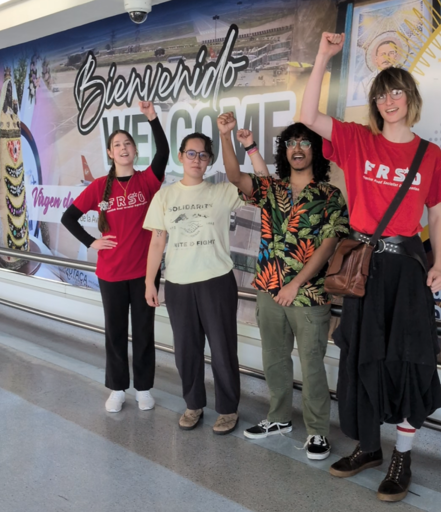 Ebtesham Ahmed de Estudiantes por una Sociedad Democrática enfatizó que la lucha por una Palestina libre solo ha reforzado su determinación de oponerse a la guerra contra Venezuela, declarando, “Durante los campamentos por Palestina, los estudiantes aprendieron a ser audaces para el movimiento antibélico. ¡No tenemos miedo de ser audaces ahora y atravesar la zona de exclusión aérea!”.