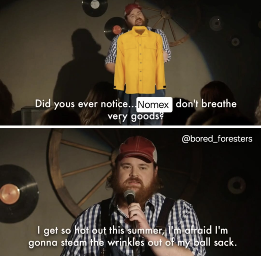 Track_Shovel@slrpnk.netM to Bushrat Confidential - Environmental Sector memes and stories@slrpnk.netEnglish · 4 months agoFire Retardant Workwearslrpnk.netimagemessage-square0linkfedilinkarrow-up11arrow-down10