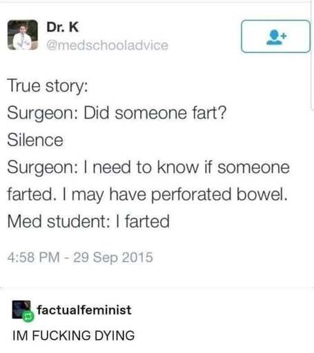 It’s funnier when you realize the med student and surgeon are not in an operating room.