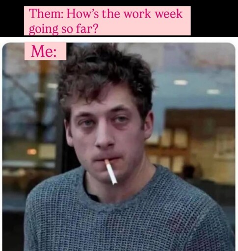 minus-squareyermaw@sh.itjust.workslinkfedilinkarrow-up0·1 month agoIts only Tuesday? Coulda swore it was Thursday
