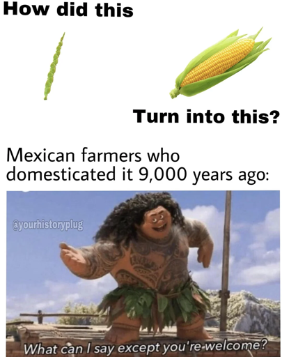 The change from teosinte to maize involved a surprisingly small change to it’s genetic code. Something like 5 genes.