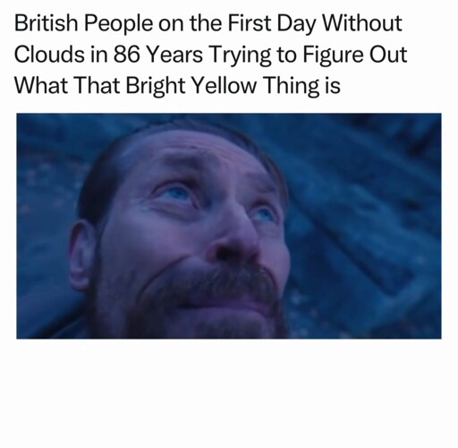 The British get plenty of sun, about a month’s worth of it, it’s just spread across 365 random days that have no rhyme or reason to them, and usually one random hell week in summer where all you want it to do is rain cause it’s so damn high pressure.