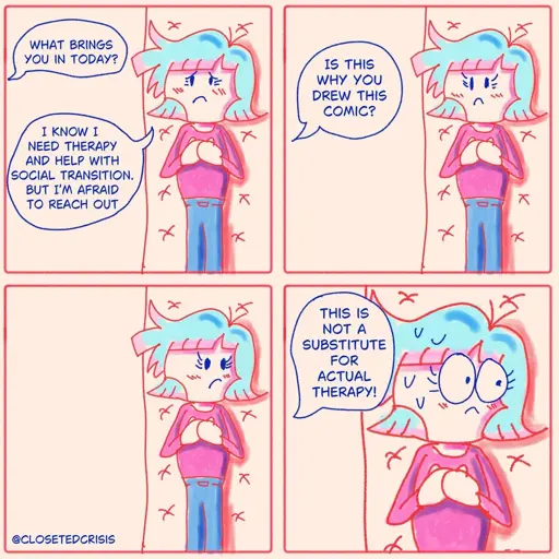 Does it cover gender affirming therapists who you can trust coming out to? Will it continue to cover the therapists that works best with you, or will someone you were seeing suddenly become unavailable? Is there a copay? Do you even have a good enough job to not have terrible insurance?