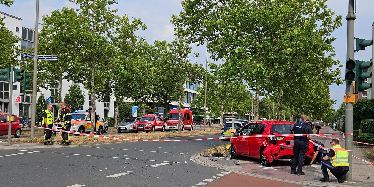 Am Dienstagnachmittag hat sich in der Doris-Ruppenstein-Straße in Erlangen ein schwerer Unfall mit sieben Verletzten ereignet. Gegen 15 Uhr fuhr ein 81-jähriger Autofahrer an einer roten Ampel plötzlich los. Dabei touchierte er zwei neben ihm stehende Fahrzeuge und schob anschließend einen Kleinwagen vor sich über die Kreuzung. Der Kleinwagen prallte gegen einen Ampelmast, der durch den Aufprall umknickte. Der 81-Jährige setzte seine Unfallfahrt fort. Auf rund 800 Metern wechselte er mehrfach die Fahrbahn und streifte mehrere Pfosten und Bäume. Sieben Menschen wurden bei dem Unfall verletzt – zwei mittelschwer und fünf leicht.