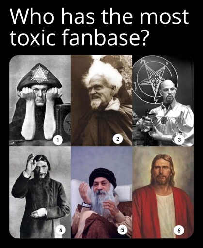 To answer the question though, white Jesus easily has the most toxic fan club, by sheer volume of followers.