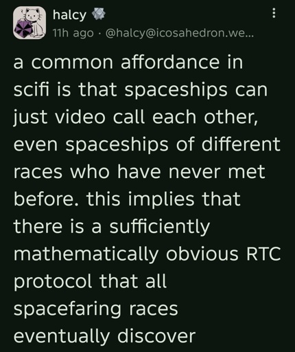 I like the theory of the mathematically obvious RTC protocol, since that would also serve as a sufficient filter for newer races to determine if they are technologically advanced enough. Could they successfully dial in without assistance? Cool let’s start chatting now and begin integration with the federation (plus leaves the opportunity of a plot for an almost-ready race that was given illegal assistance, and maybe it’s revealed that one of the dominant races was also given illegal assistance when they first dialed in)