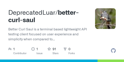 arrow-up14arrow-down1external-linkBetter Curl Saul: a lightweight API testing CLI focused on UX and simplicitygithub.comRSS Bot@lemmy.bestiver.seMB to Hacker News@lemmy.bestiver.seEnglish · 16 days agomessage-square1linkfedilinkfile-text