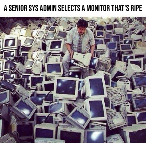 arrow-up1448arrow-down1imageA senior sys admin selects a monitor that's ripelemmy.mlcm0002@lemmy.world to Programmer Humor@programming.dev · 12 days agomessage-square11linkfedilinkcross-posted to: programmerhumor@lemmy.ml