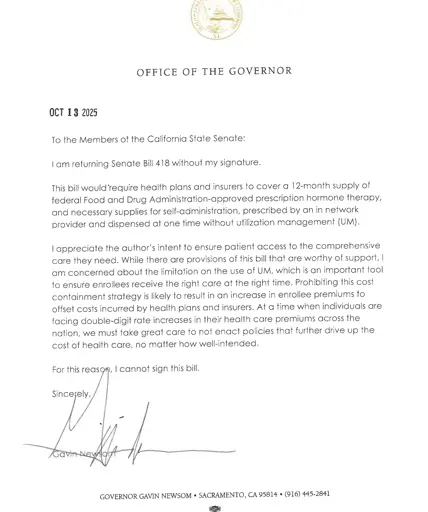 One thing I’ve learned about California politics is that newsom has frequently vetoed bills that passed with an OVERWHELMING majority in the state senate/assembly and the legislature typically has significantly more than enough votes to override his vetoes.