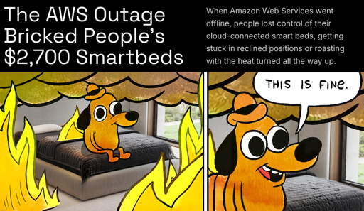 They weren’t bricked, they were unresponsive for most of the day), and they could be unplugged if needed. An internet-connected bed is stupid, but this clickbait is even more so.