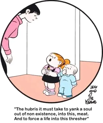 How do you figure you have the authority to force someone into existence? Like, for real. To me this feels like the most selfish act possible. I can’t see any reasons that would stand up to scrutiny to have children other than “cause I wanna”. And yes. It’s forcing them. It’s not “a gift”, since a gift can be declined.