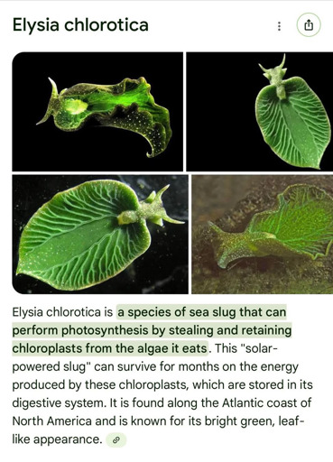 I assume chloroplast is much more complex than fat and we do actually have fat within our body, while the slug doesn’t naturally grow chloroplast.