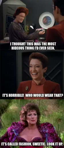 1·22 days agoHeh, I just watched “The Search” the other day which is actually what inspired this meme. The thought did cross my mind that “Seska” could be T’Rul wearing a Cardassian mask wearing a Bajoran mask.