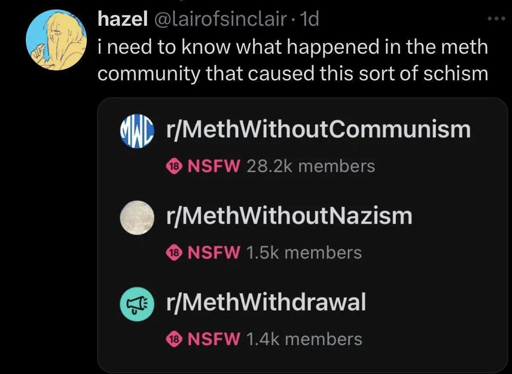 8·1 month agoYeah I was gonna say, fuck Israel but saying they control the US is actually antisemitic ZOG bullshit.